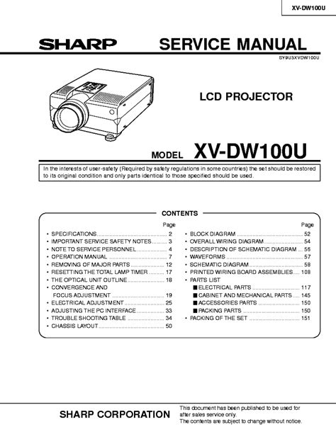 Presently you are looking for an Sharp Xv Dw100u Full Service Manual Repair Guide example that we provide here in some type of document formats like as PDF, Doc, Strength Point, and in addition images that will make it simpler for you to create an Sharp Xv Dw100u Full Service Manual Repair Guide yourself. For a more clear look, you can open some examples below. Each of the good examples about Sharp Xv Dw100u Full Service Manual Repair Guide on this website, we get from many sources so you can create a better record of your own.